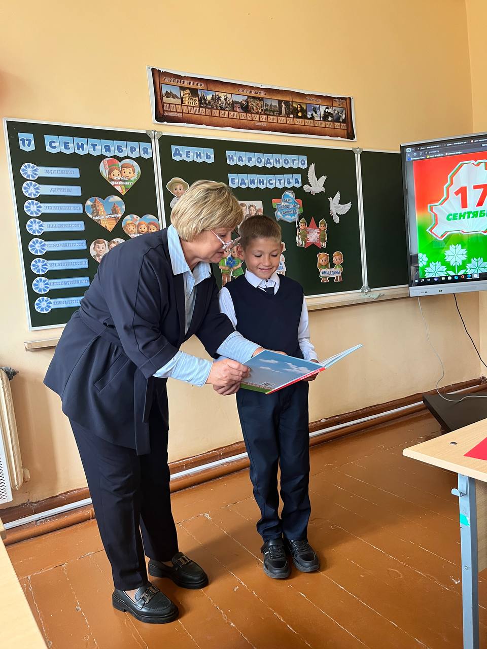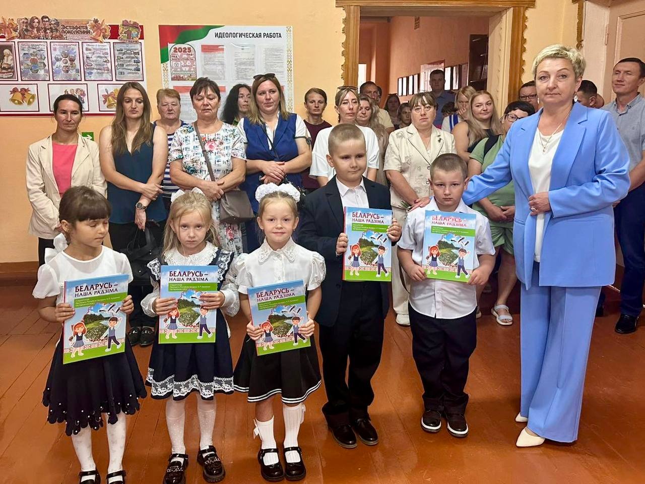 Директор школы Роговцова Т.М. поздравила с началом учебного года и вручила первоклассникам подарок от Президента Республики Беларусь — книгу «Беларусь — наша Радзіма». 📚🇧🇾