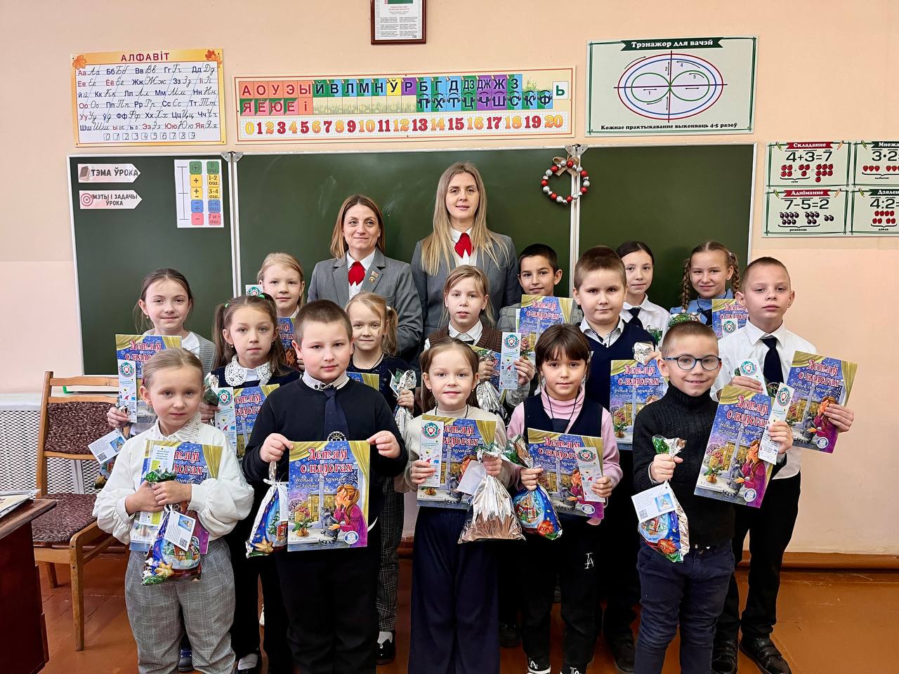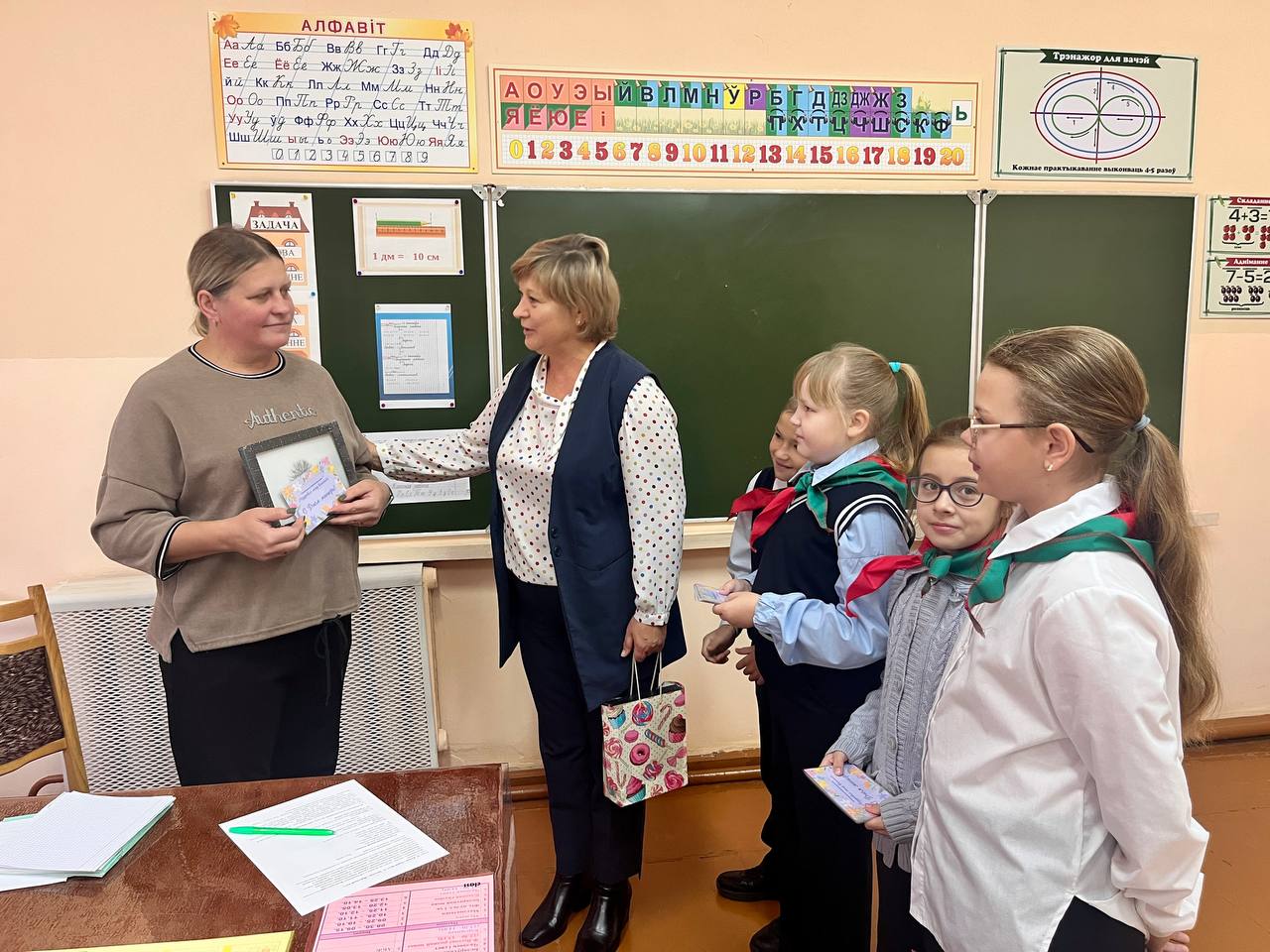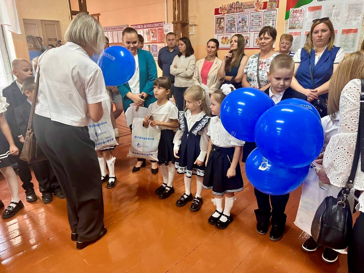 В торжественной обстановке с напутственным словом выступили приглашенные гости: Ермак Н.П., начальник РУП «Белпочта» и вручила первоклассникам подарочки, наполненные всеми необходимыми школьными принадлежностями. 🎁🌟 Также Салонин А.С., представитель Октябрьского исполнительного комитета, поздравил всех присутствующих и вручил портфель будущей первокласснице из многодетной семьи. 🎒✨