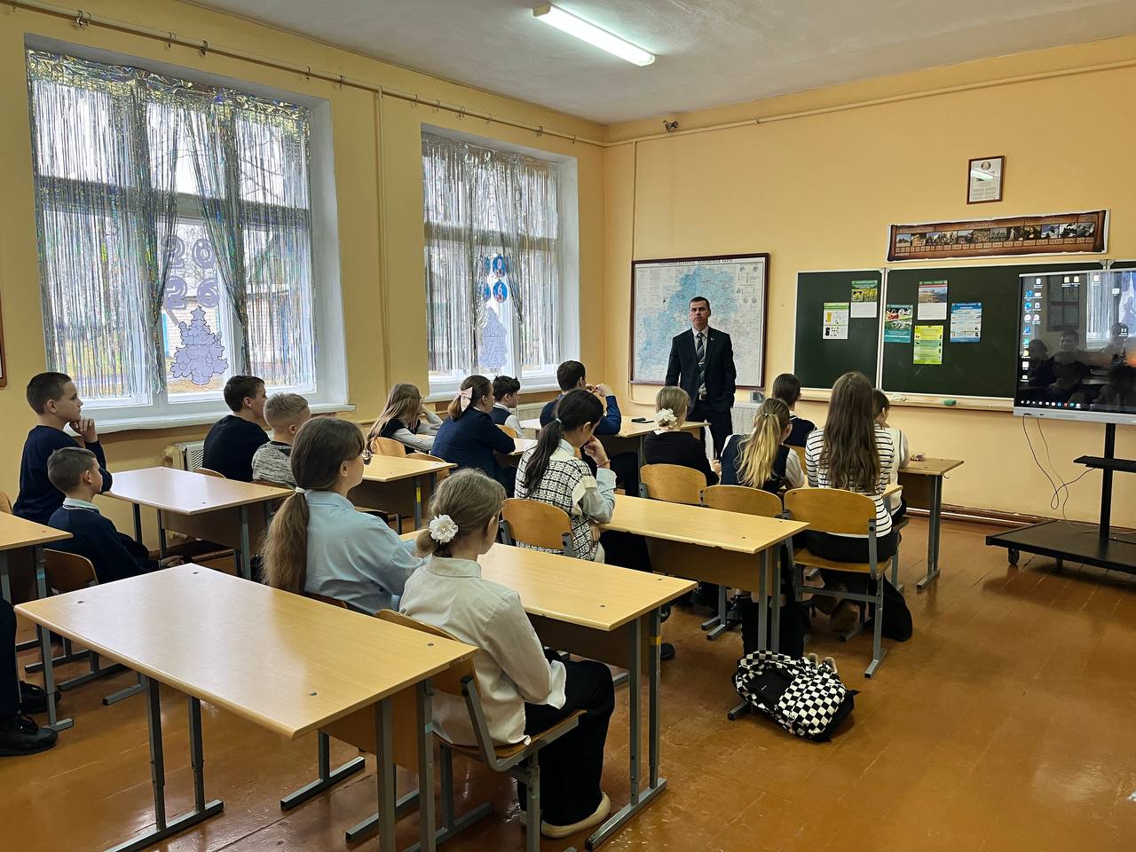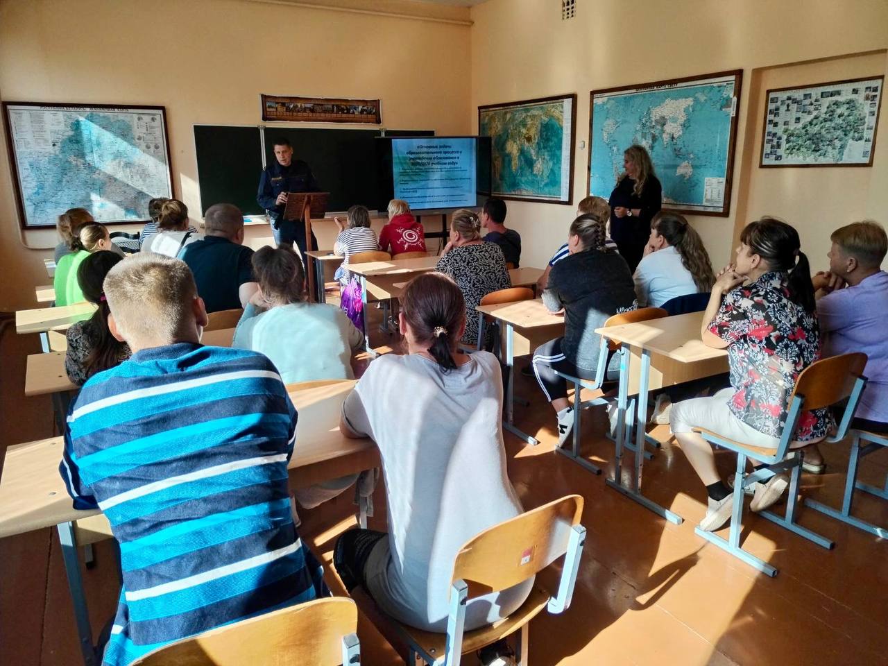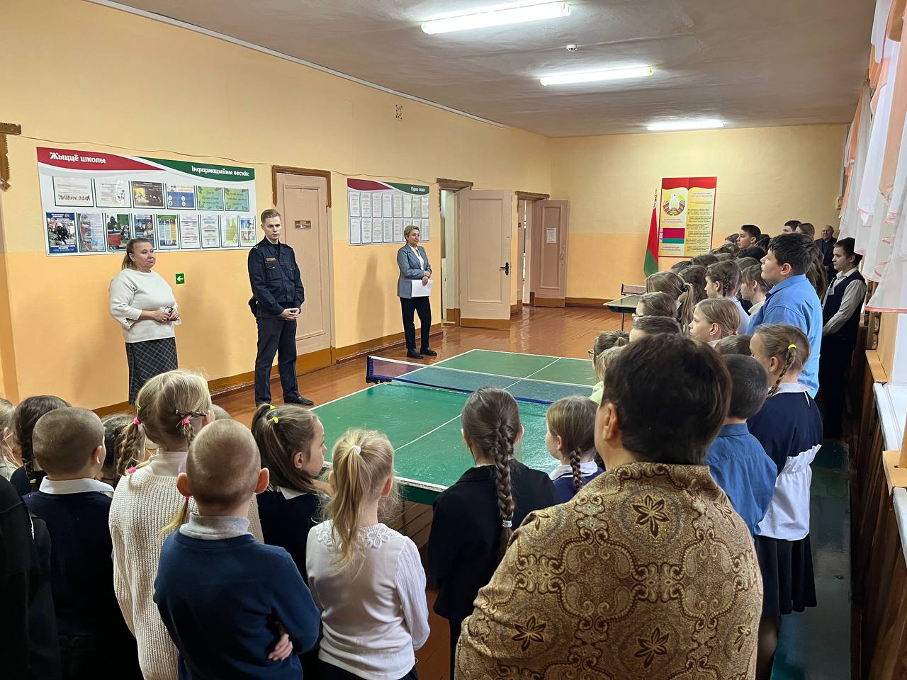 📢 В Проскурнянской средней школе прошла профилактическая встреча учащихся с Инспектором ИДН! 👮♂️ Котиков С.И. ознакомил учеников со статистикой правонарушений несовершеннолетних за летний период. 🧮📈