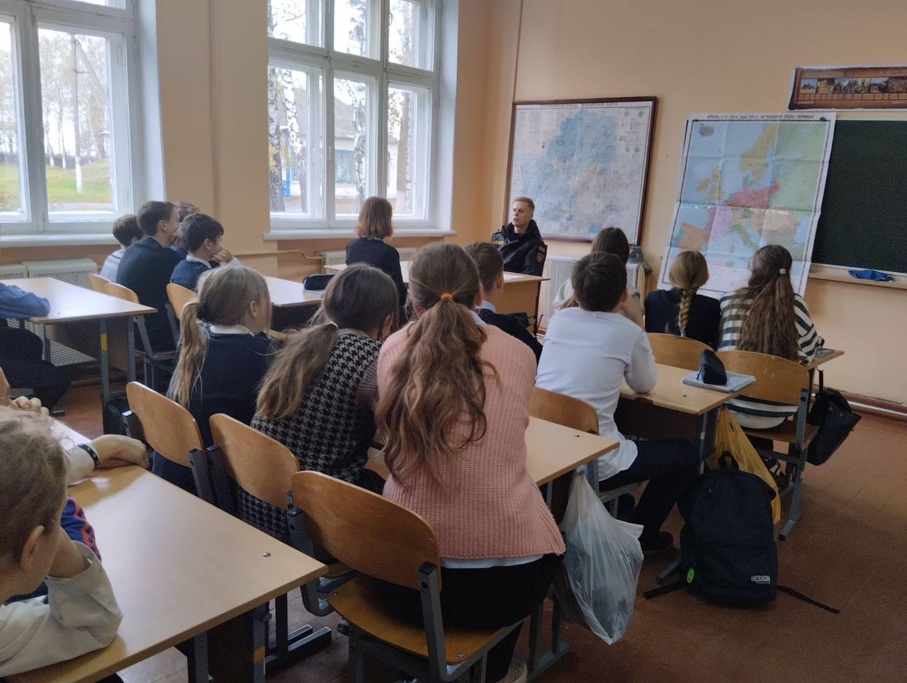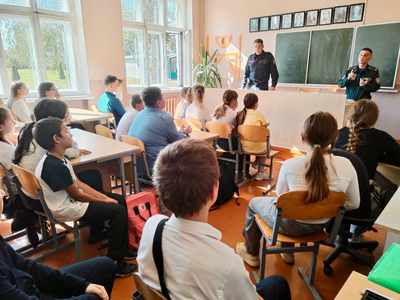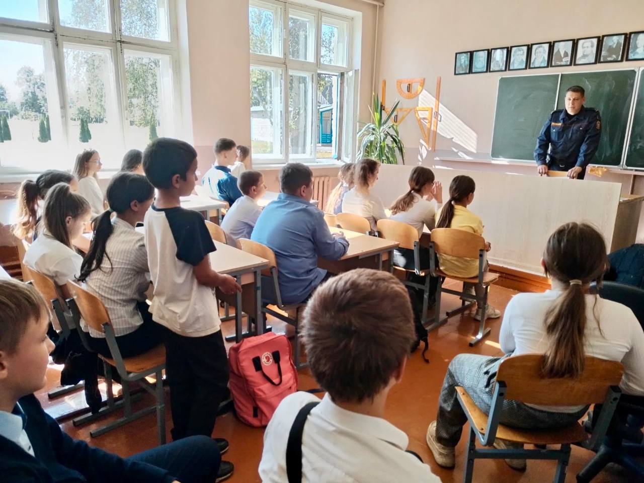 📢 В Проскурнянской средней школе прошла профилактическая встреча учащихся с Инспектором ИДН! 👮♂️ Котиков С.И. ознакомил учеников со статистикой правонарушений несовершеннолетних за летний период. 🧮📈