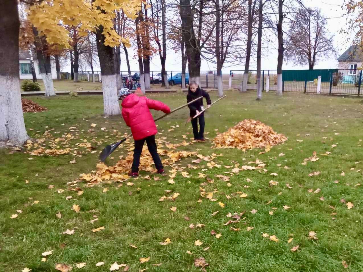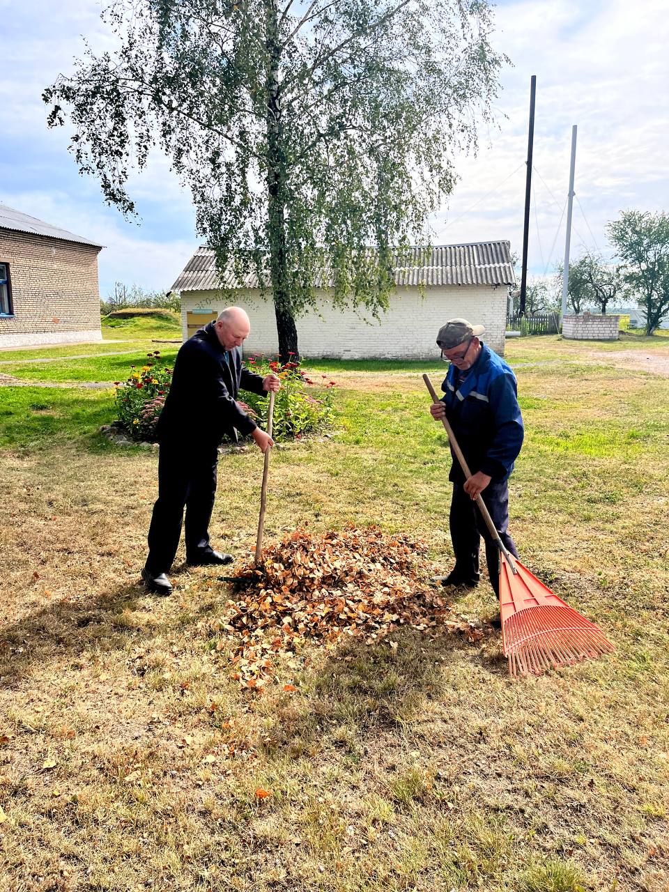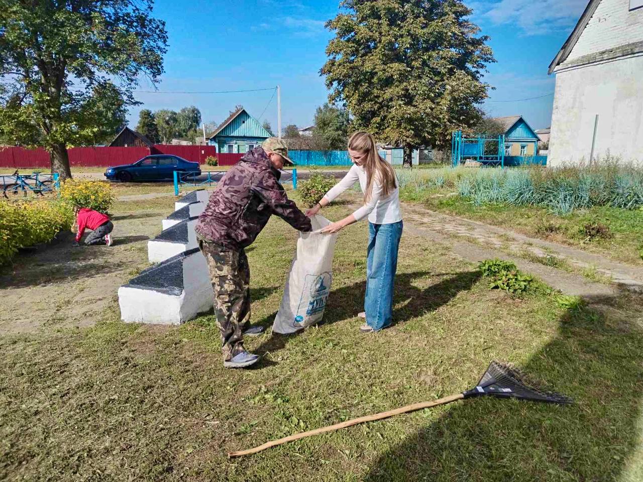 В новом учебном году это первая трудовая акция. Все участники привели в порядок не только территорию школы, но и территорию возле памятника погибшим землякам в деревне Проскурни.