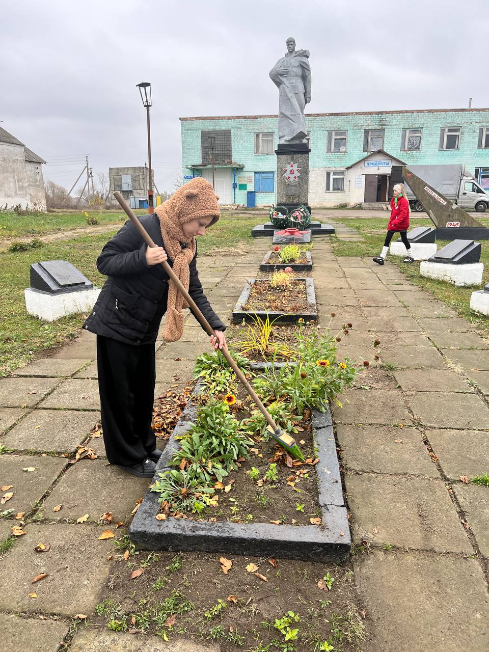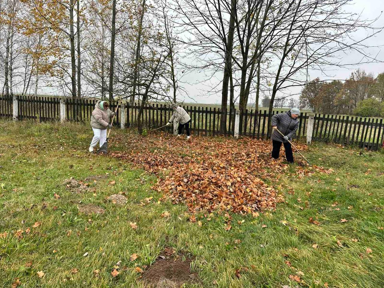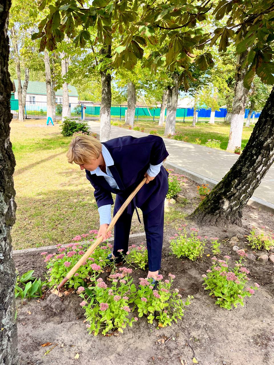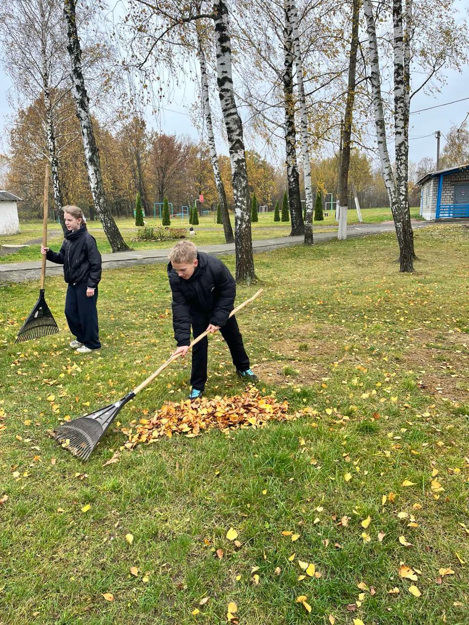 В новом учебном году это первая трудовая акция. Все участники привели в порядок не только территорию школы, но и территорию возле памятника погибшим землякам в деревне Проскурни.