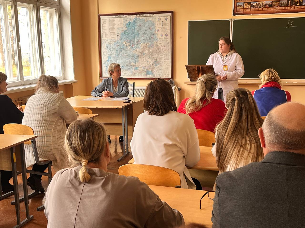 Об усилении работы по профилактике травматизма 🩹👩⚕️. Перед присутствующими выступил медицинский работник Проскурнянского ФАПа. Все повторили, как предотвратить ушибы, падения и другие травмы. Повторили правила оказания первой медицинской помощи! 💪