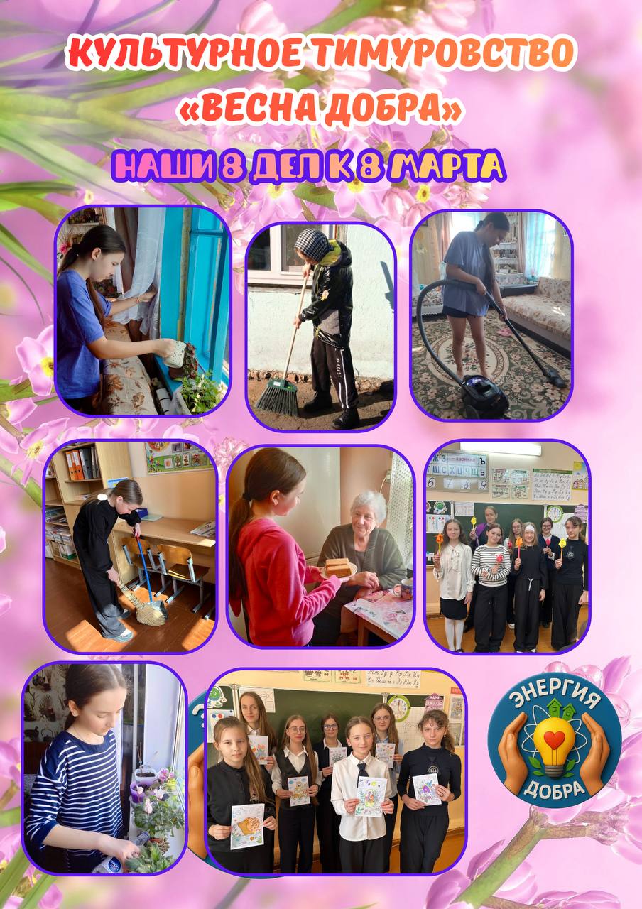 Самые активные тимуровцы составили список маленьких, но очень важных дел для женщин вокруг 🌷 (учителей, мам, библиотекарей, бабушек).