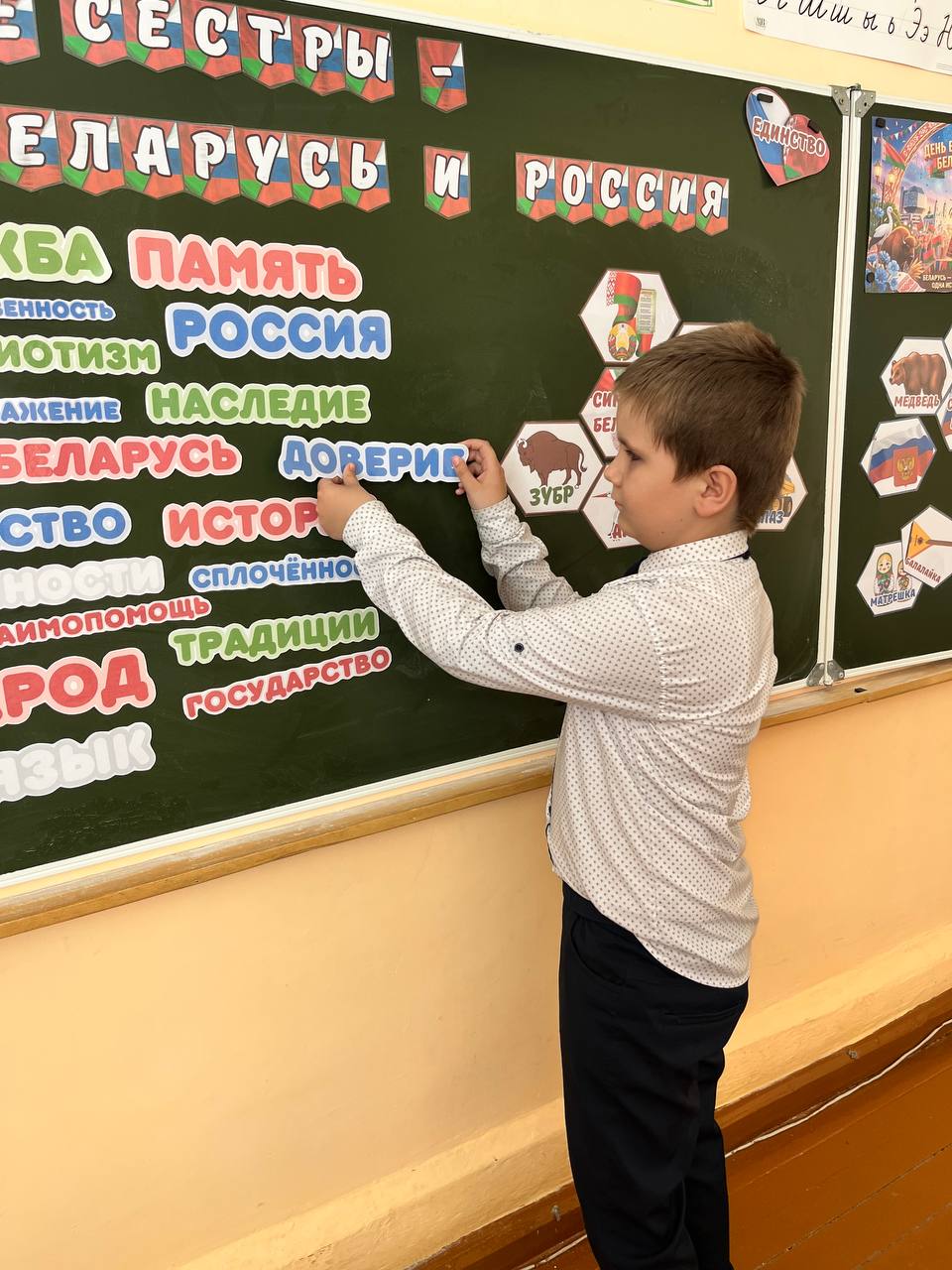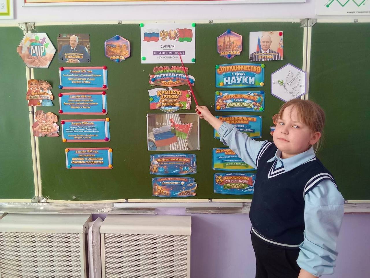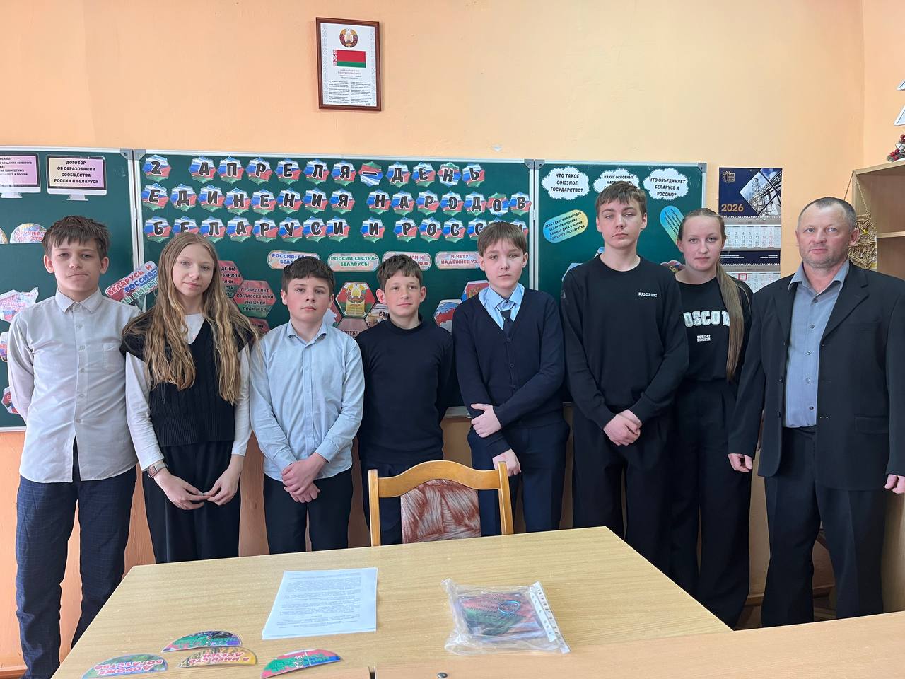 Сегодня в Проскурнянской средней школе состоялся Единый урок, приуроченный к этому празднику. На занятии с детьми обсуждали, что значит быть единым народом, вспоминали совместные традиции, культурное достояние и успехи Союзного государства.