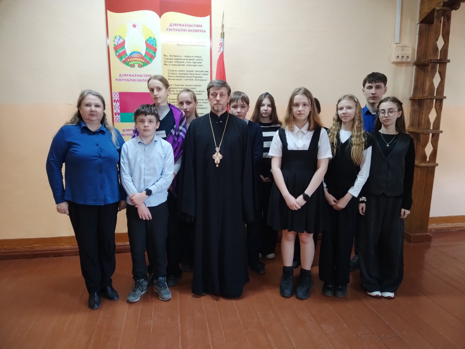 ⛪ Перед учащимися также выступил Отец Евгений из Стрешинского Свято-Покровского храма. Он затронул важные вопросы духовности, подчеркнул значимость уважения к традициям и ценностям белорусского общества, а также необходимость их сохранения и передачи будущим поколениям 🙏